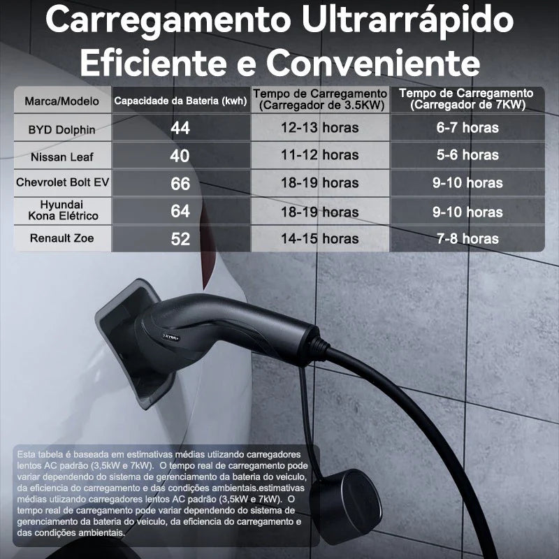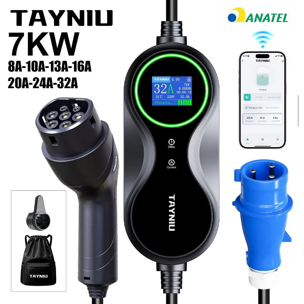 ⚡ Carregador Portátil para Veículo Elétrico TAYNIU – Tipo 2 | 7KW | WiFi Inteligente