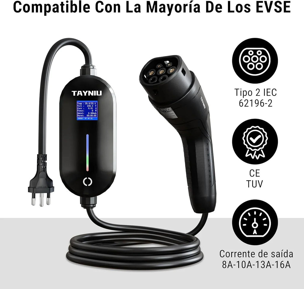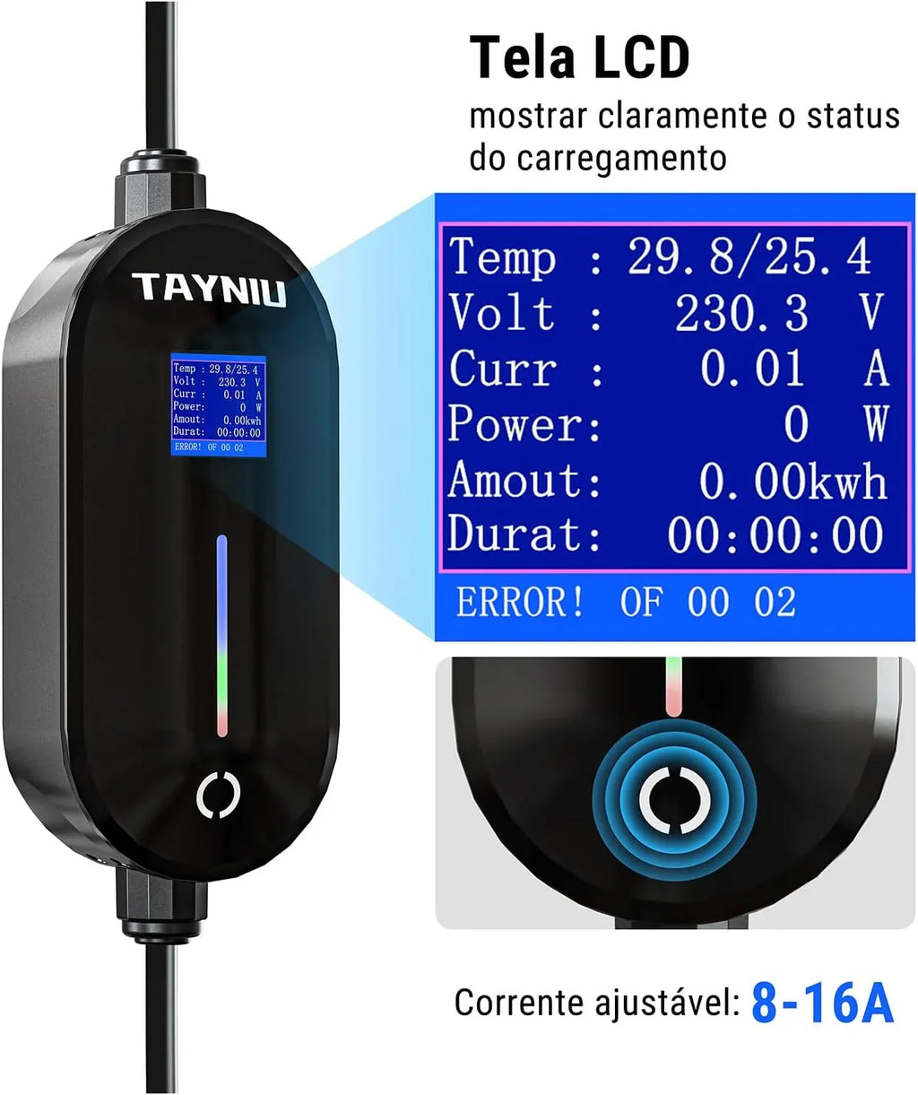 ⚡ Carregador Portátil para Carro Elétrico TAYNIU AquaPro 3.5KW – Tipo 2 | Plug Brasileiro