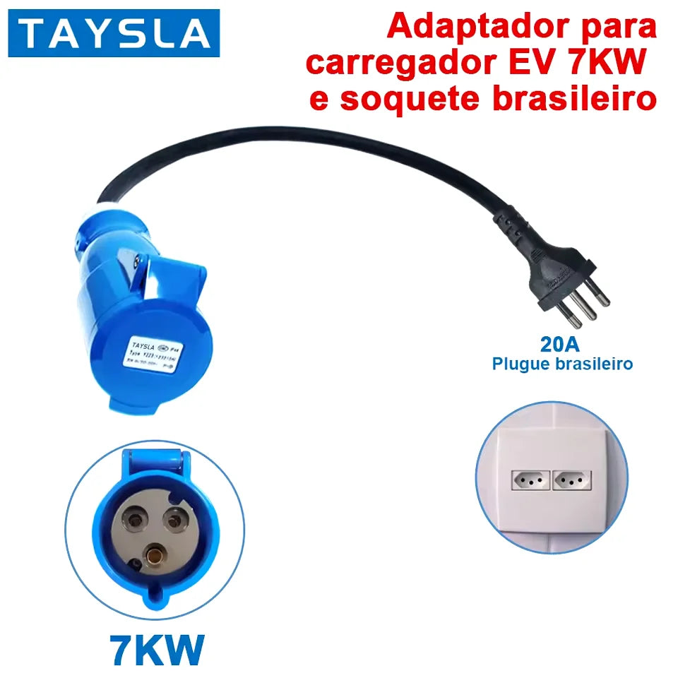 O TAYSLA EV Carregador 7kW com adaptador brasileiro é perfeito para quem busca: